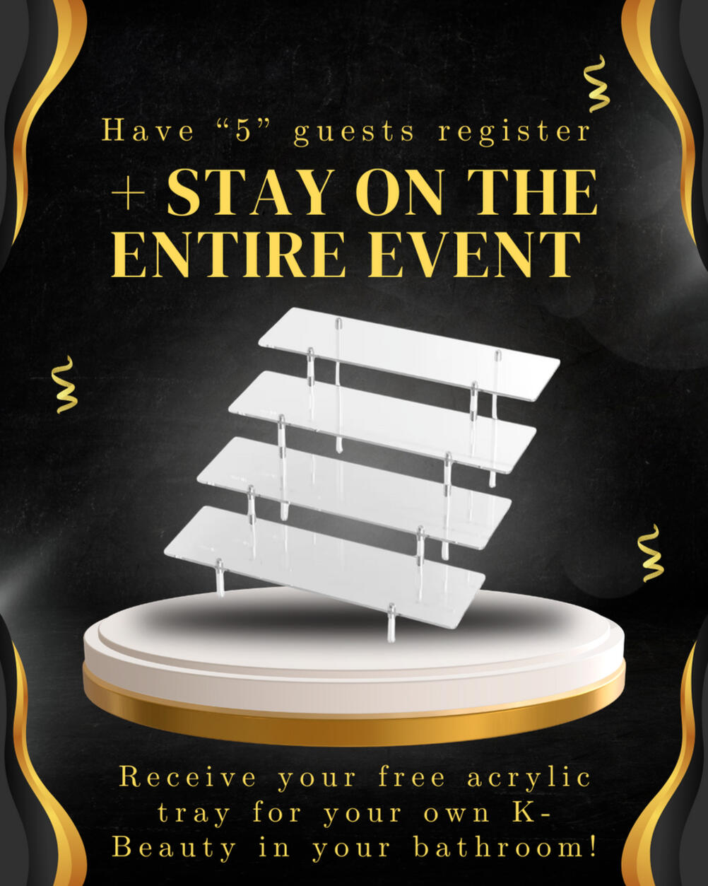 Hey, Name! This is (Your Name), I’m so excited because my mentors & I are hosting a K-Beauty event on Saturday, April 4 and I hand selected you as my guest!We are giving away 💸 brushes 🛍, an acrylic shelf + TONS of product 🧴It’s designed to give tips on the trending K-Beauty (Korean Beauty) skin care routine and uplift women and it’s going to be huge + it’s FREE!Should I send you the link?! ✨send this message with the event graphicnvite Script:
